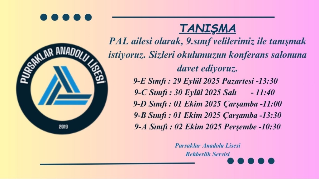 2025-2026 Eğitim Öğretim yılında aramıza katılan 9. sınıf öğrencilerimizin aileleriyle bir araya geldik. Programa okul idaresi, rehber öğretmenlerimiz, sınıf rehber öğretmenlerimiz ve ders öğretmenlerimiz katıldı.